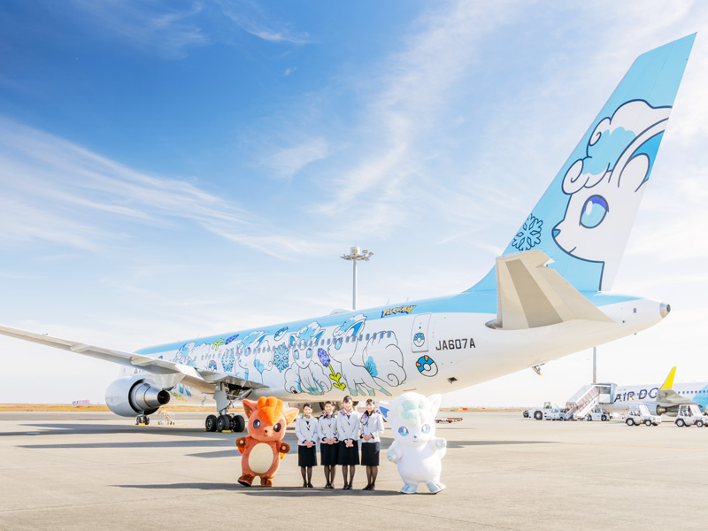 機体の右側にはロコン、左側にはアローラロコンが、AIRDOさんのコーポレートカラーの鮮やかなイエローとブルーとともに描かれているんです。