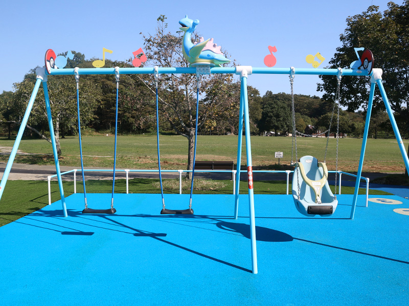 ラプラスと音符がデザインされた3連ブランコがあるよ!