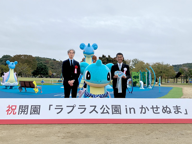ラプラス公園の開園を記念した開園式が催され、公園の敷地内に設置される新たなポケモンマンホール「ポケふた」もお披露目されたよ。