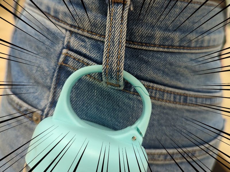 ベルトループに通しても良いし、カバンにひっかけてもいいかも。