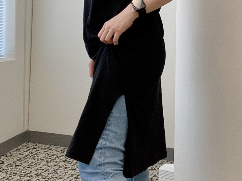 長めのワンピースだけど、サイドのスリットがはいっているから動きやすい!