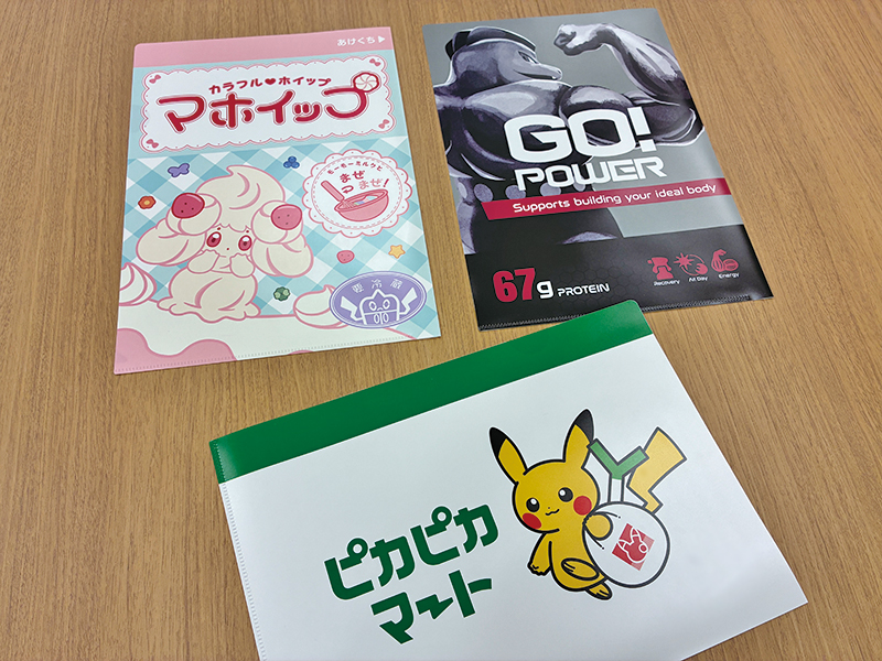 今回のアートを使用したクリアファイル。3枚がセットになっているよ!