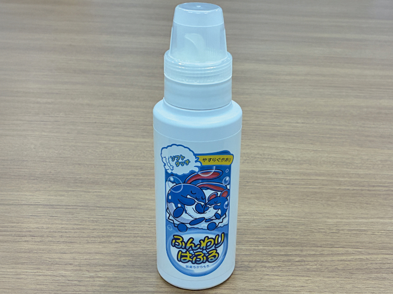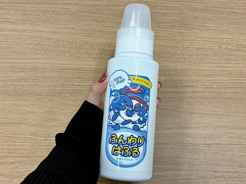 柔軟剤をイメージした「ふんわりばぶる」のランドリーボトル。