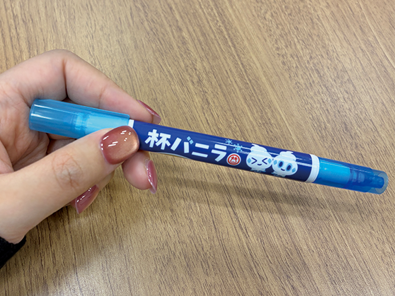 それぞれ上下に、太さと色が違うペン先が付いているよ!