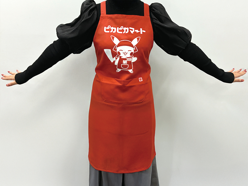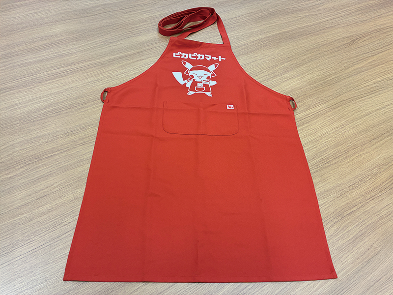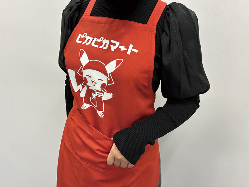 ピカピカマートの店員さんの衣装を着せてもらった、ピカチュウのぬいぐるみだよ。
