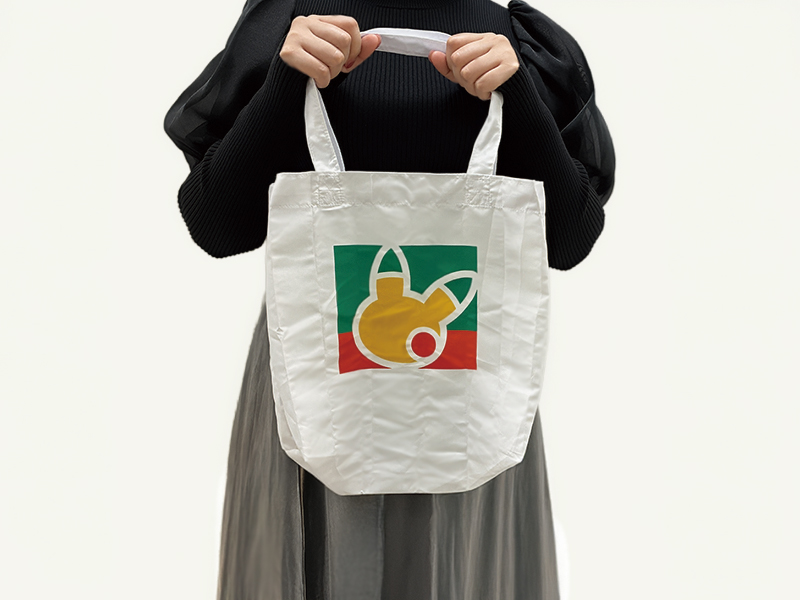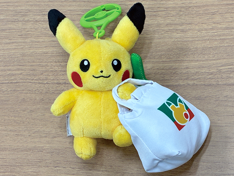 ピカチュウのぬいぐるみが持っている袋と同じデザインのエコバッグだね。